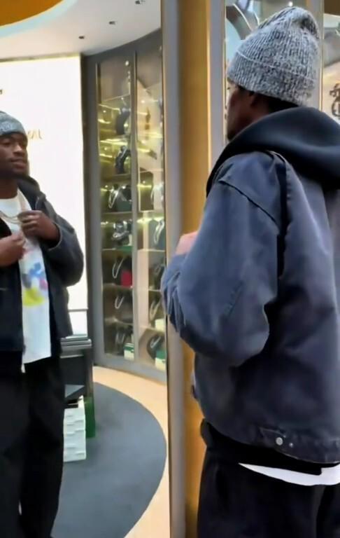 有媒体上传视频,画面中萨姆纳出现在某处珠宝店,他挑了一个金链子。只见服务员拿出金链子给萨姆纳戴上,他自己照镜子观看。