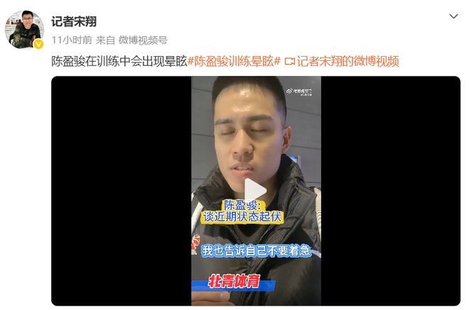 会的,请看北京媒体人宋翔在本场比赛赛前的采访报道——因为鼻骨伤情影响,陈盈骏在训练中还会出现晕眩的症状。