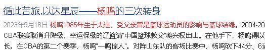 当然,杨鸣的公众形象并不只由冠军构成。因为外形出众,他天然容易被娱乐化解读。再加上婚姻变动曾引发持续关注,体育新闻也被推到了社会新闻的位置。