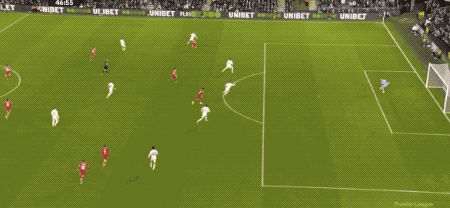 比分领先的富勒姆主动回防,利物浦只能在前场通过横传寻找机会,但始终没有更好的办法打穿防线。