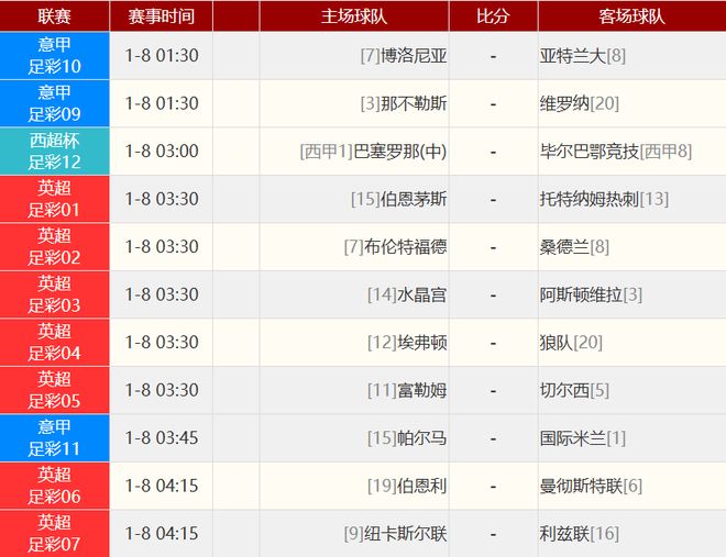其他赛事比分: